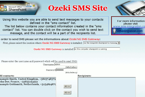 - Download Page to get Ozeki NG SMS Gateway to add SMS functionality to SharePoint