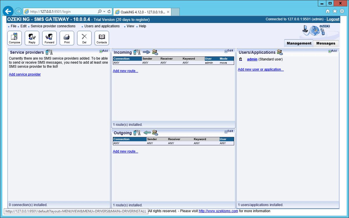 During the installation process, follow the steps and at the end of the installation, your Ozeki NG SMS Gateway will be opened automatically (Figure 18).